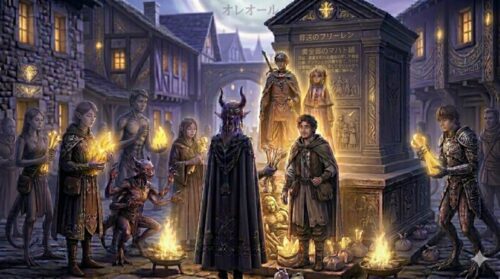 マハトは他の魔族とは異なり、「人間を知りたい」という強烈な知的好奇心を持った異端の魔族でした。彼は人間の持つ「悪意」や「罪悪感」といった感情がどうしても理解できず、それを理解するために城塞都市ヴァイゼの領主グリュックに仕え、人間社会に溶け込もうとします。しかし、感情を持たない彼が行き着いた結論は、「自分が最も好意を抱いている人間たちを惨殺すれば、罪悪感が芽生えるかもしれない」という、人間から見れば狂気としか思えない恐ろしい実験でした。結果として彼は、ヴァイゼの街を人々もろとも黄金に変えて静止させてしまったのです。